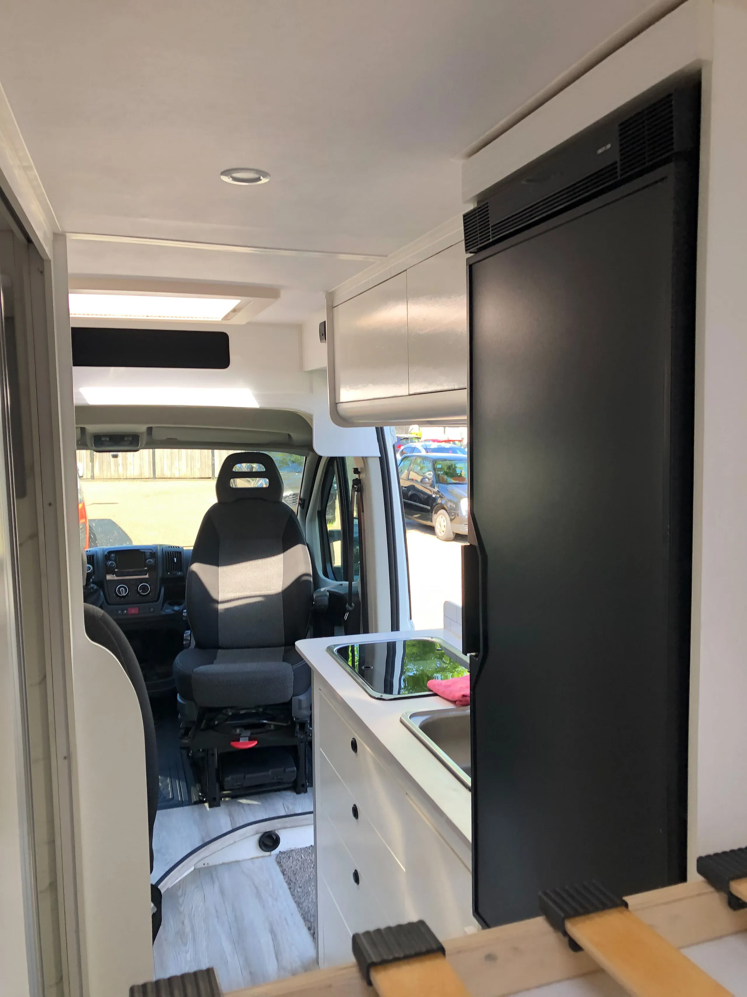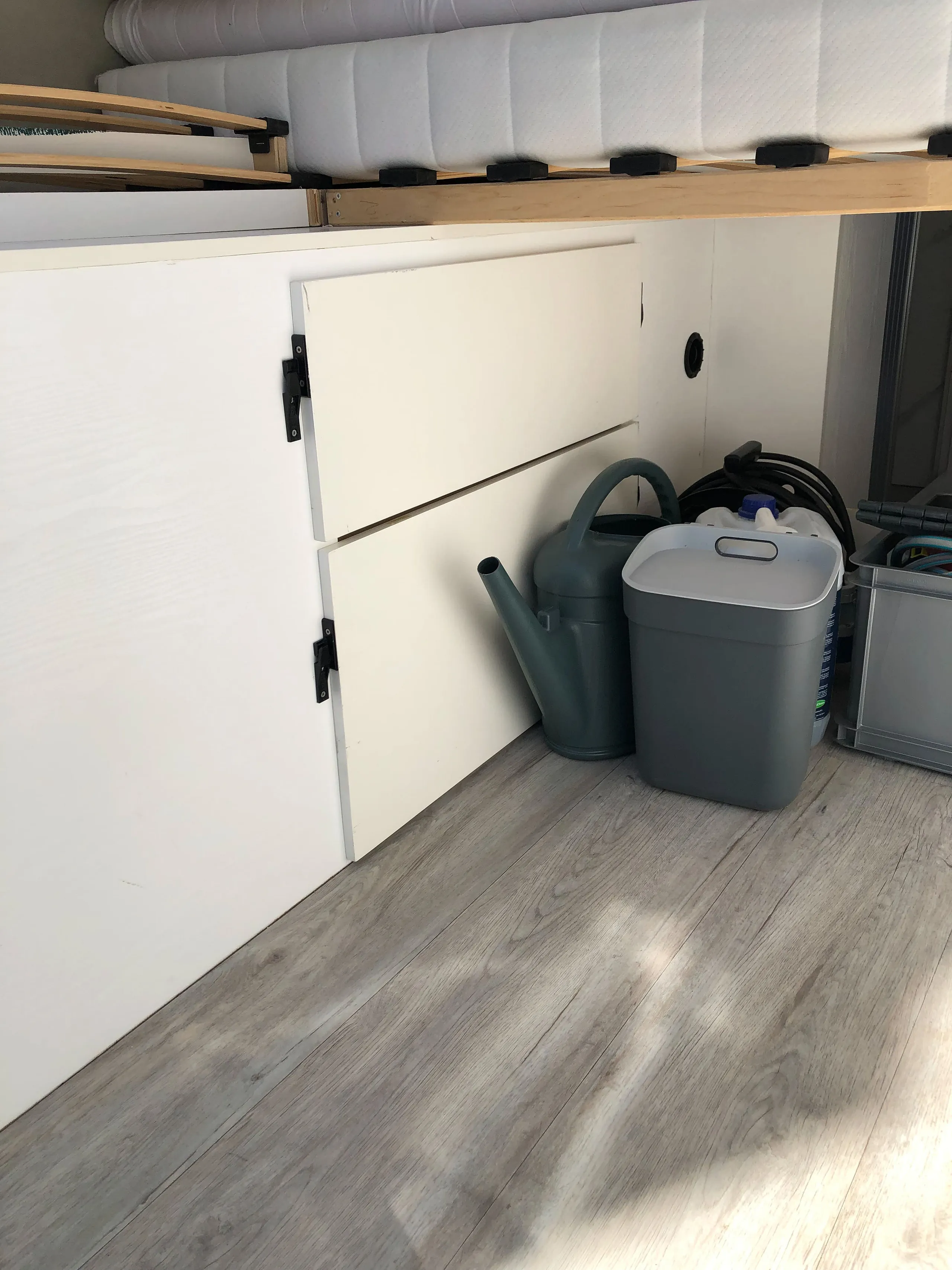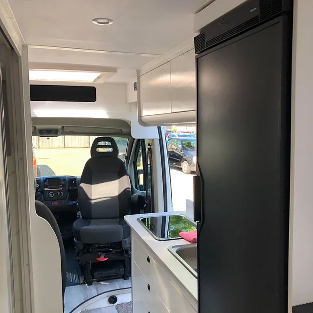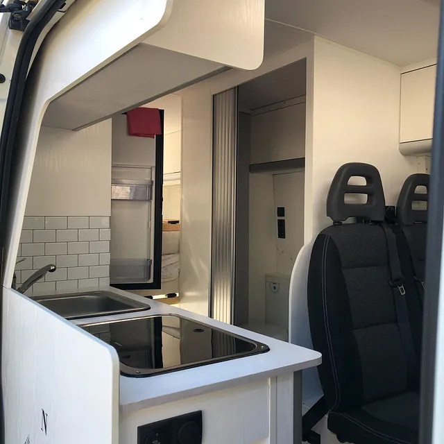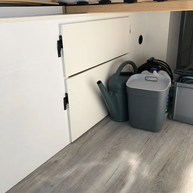 De camper beschikt over een 120 liter schoonwatertank, weggewerkt in het slaapgedeelte, die via een Sureflow drukpomp de hele camper van water voorziet. Het toilet is een gesloten systeem met een Thetford cassette en spoelfunctie. Voor warm water én verwarming is een Truma Combi 4E boiler geplaatst, aangesloten op een ringverwarming. Zo ben je altijd verzekerd van comfort, ook op koude dagen. Alles is compact en efficiënt ingebouwd.